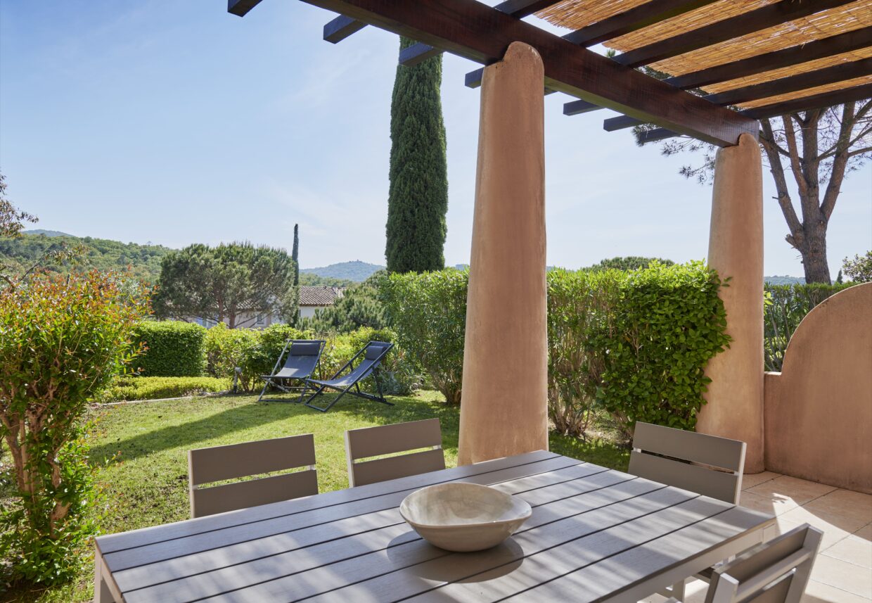 Provencal house with three bedrooms and two bathrooms, one of which is en suite, an equipped kitchen and a living/dining room a few minutes from Saint-Tropez, in the private and secure domain of the Golf Club Saint Tropez.