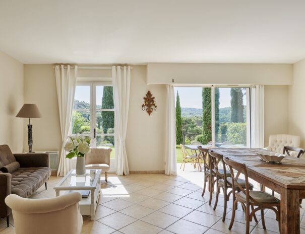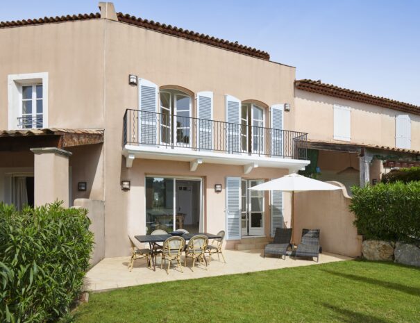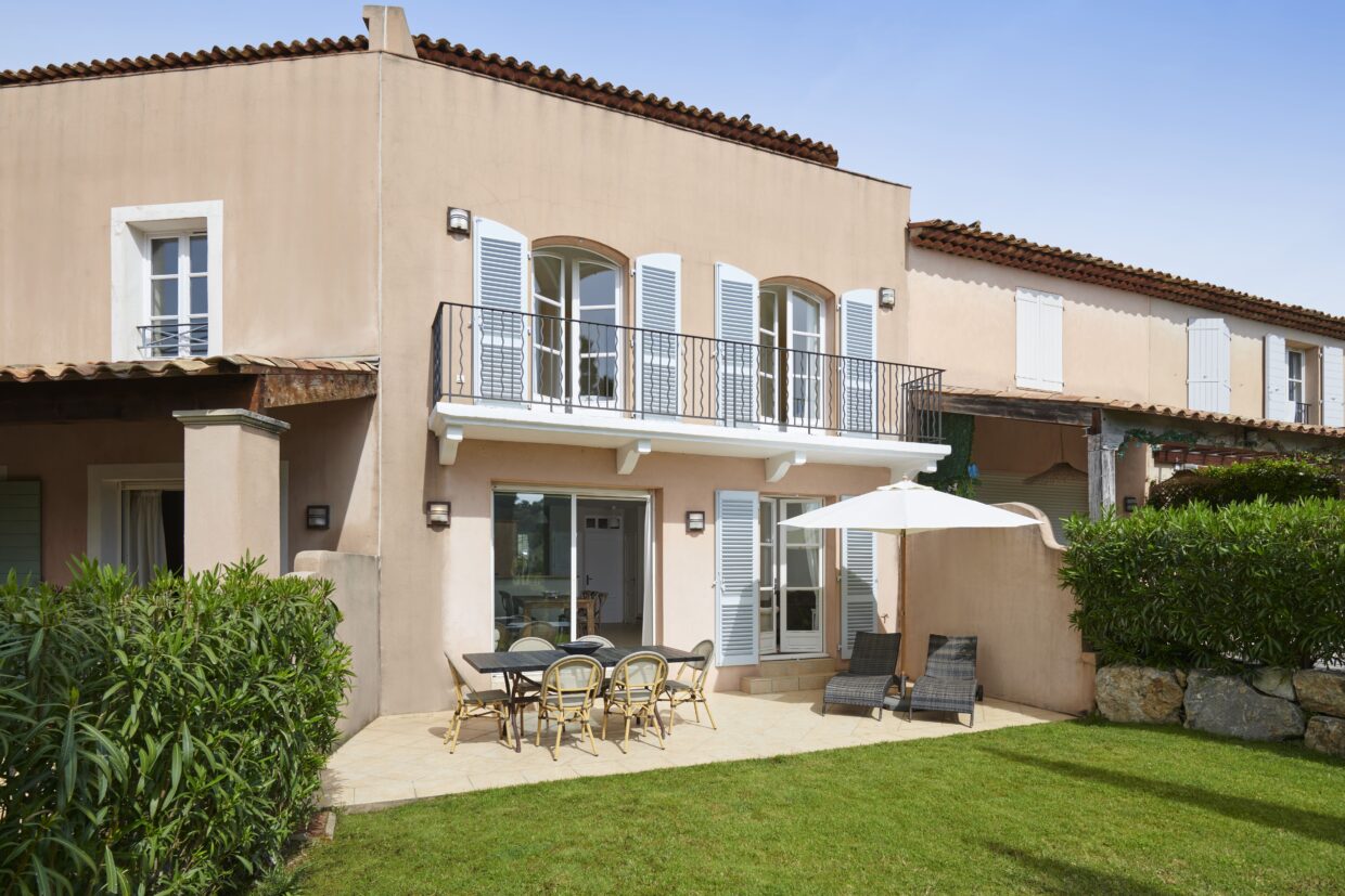 Maison provençale de trois chambres à coucher et trois salles de bain, dont une en suite, une cuisine équipée et un salon/salle à manger à quelques minutes de Saint-Tropez, dans le domaine privé et sécurisé du Golf Club Saint Tropez. Idéal pour un famille de 8 personnes souhaitant passer un séjour au calme dans un lieu féérique.