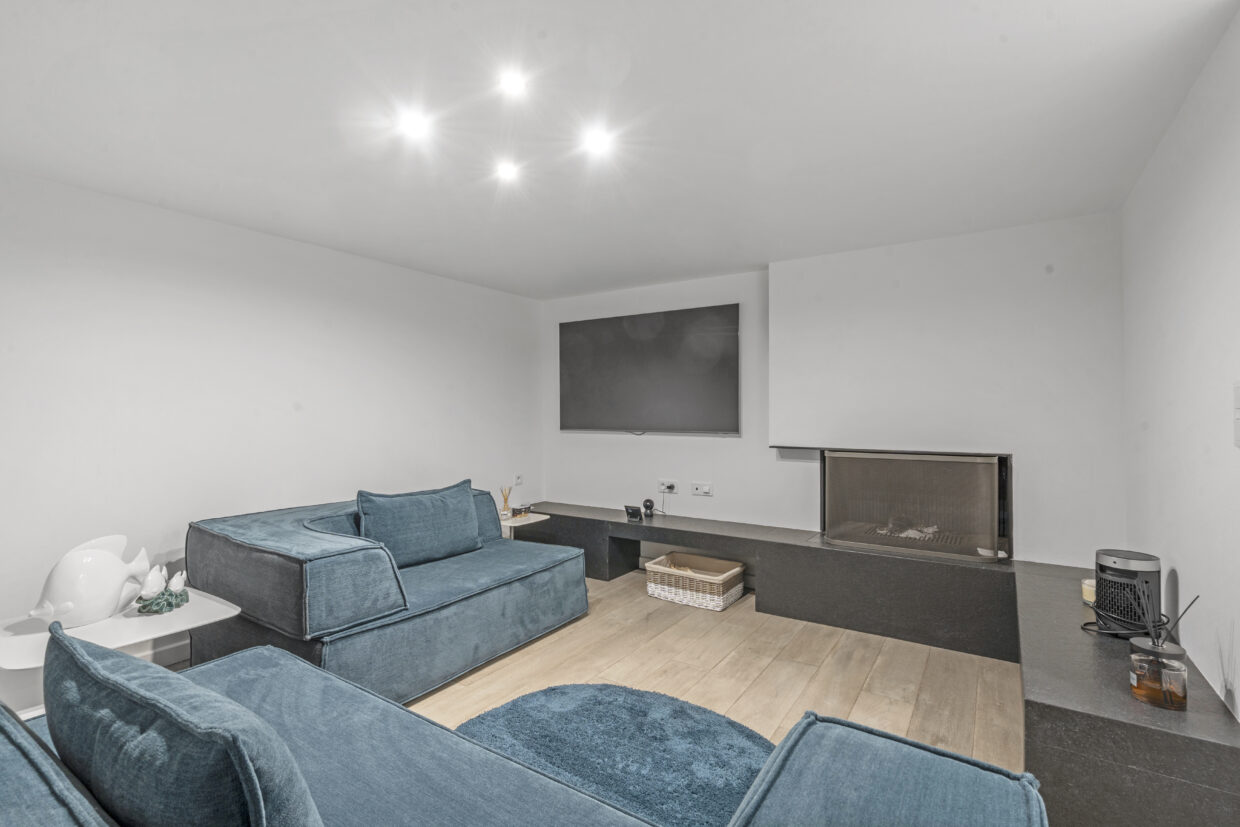 L’espace de vie, avec cuisine toute équipée ouverte sur le séjour, se distingue par sa luminosité grace a ses teintes blanches et sa large ouverture vers l’extérieur.